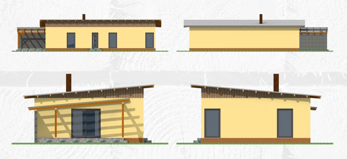 Bungalov 126 je dům menší velikosti, obdélníkového půdorysu, vhodný jako samostatně stojící, např. na hranici užšího pozemku. Svými vnitřními prostory uspokojí nároky na bydlení 4-5 členné mladé rodiny. V kombinaci s terasou umístěnou hned při fasádě domu poskytuje velmi příjemný komfort v letních měsících. Dům má vhodně oddělenou denní a noční část domu. Jasné a poměrně jednoduché dispoziční řešení splní nároky investora na kvalitu bydlení.